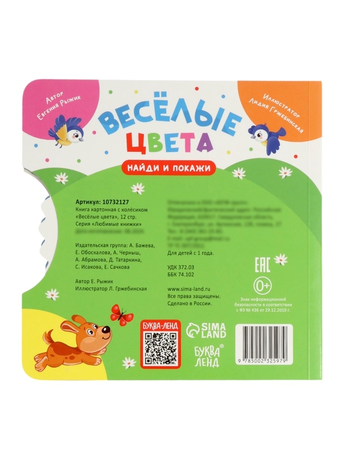 Книга картонная с колёсиком "Весёлые цвета", 12 стр.