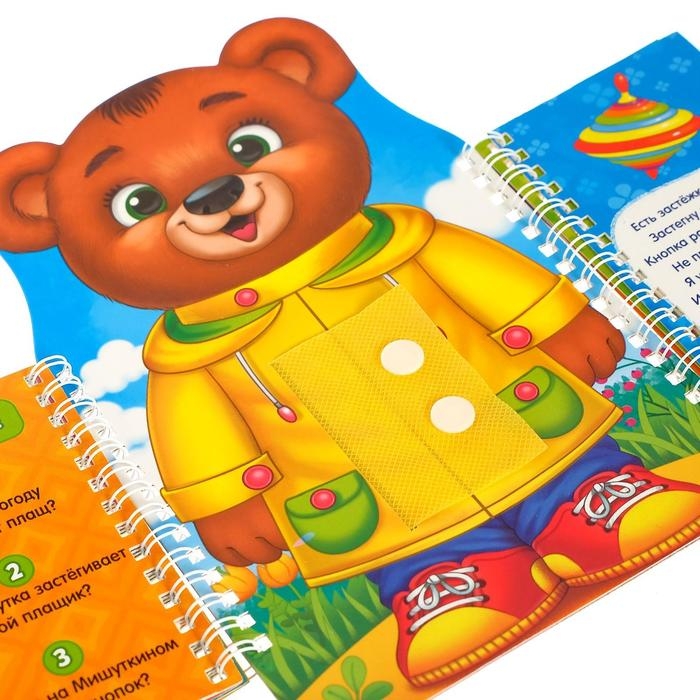 С яркой и интересной бизикнижкой малыш узнает, как одеваются в разное время года и научится застёгивать и расстёгивать пуговицы, шнурки, кнопки и молнию.