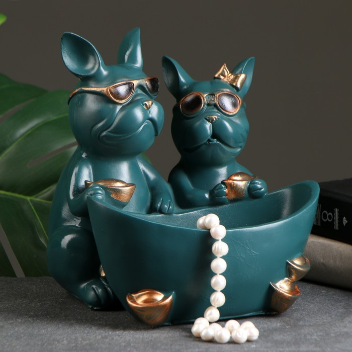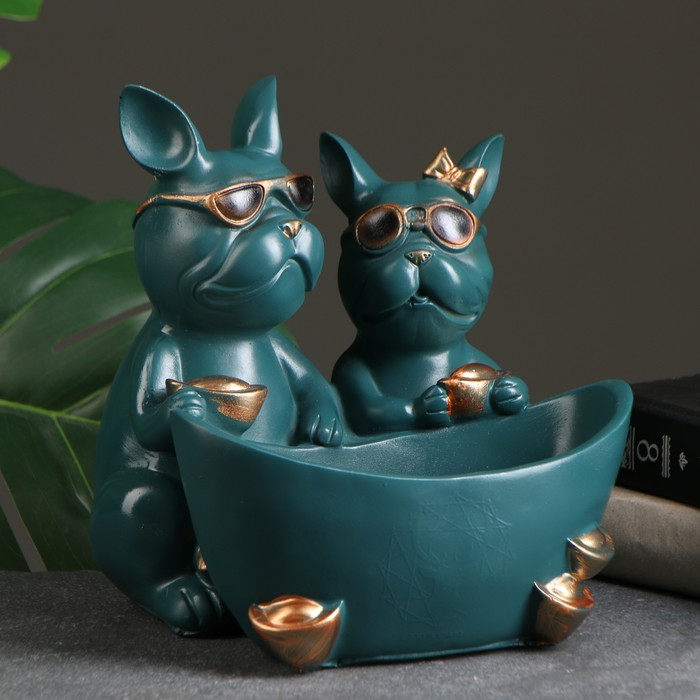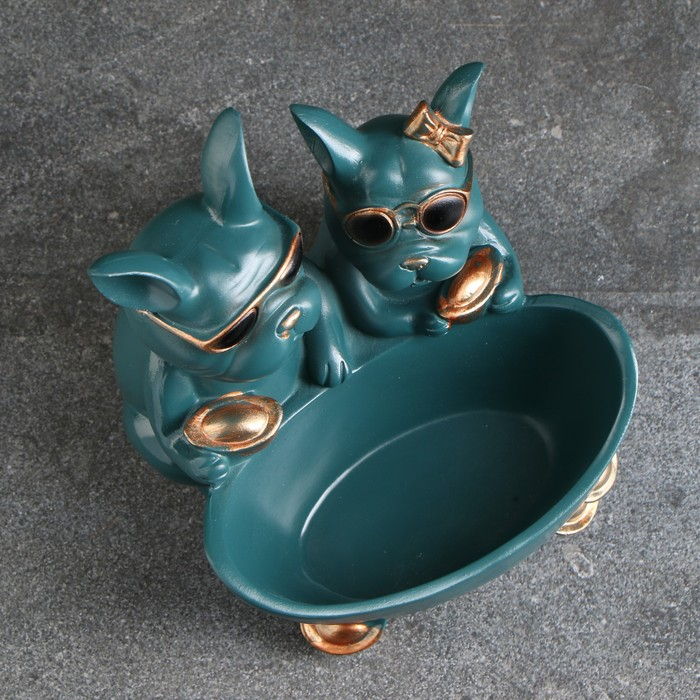 Подставка конфетница "Два бульдога" зеленая, 21х19х19см