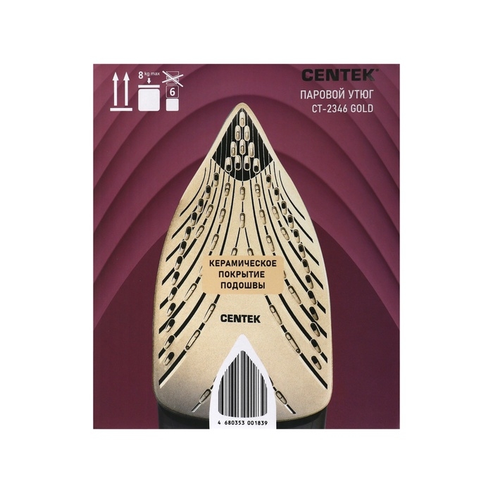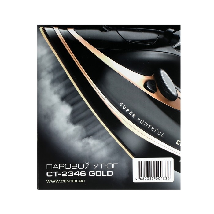 Утюг Centek CT-2346, 3200 Вт, керамика, 380 мл, капля-стоп, пар. удар, черно-золотистый