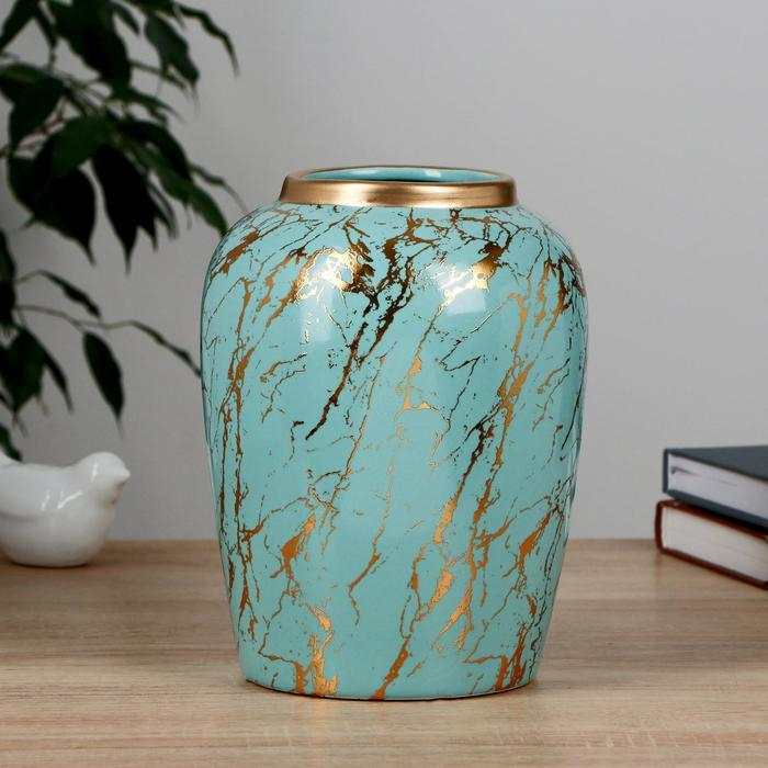 Ваза керамика настольная "Гелла" d-9,5 см 15х20 см, голубой