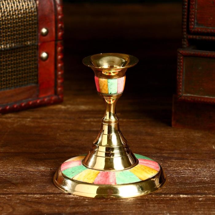 Подсвечник "Радуга" латунь, перламутр 9х9х10 см