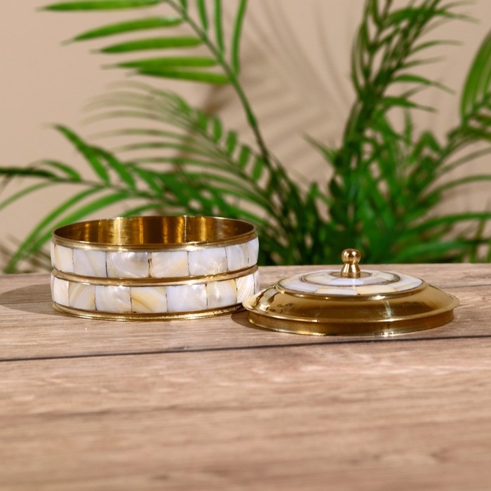 Шкатулка "Пилл" латунь, перламутр 9х9х5 см
