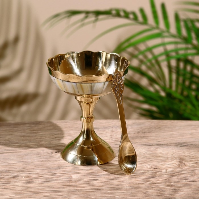 Креманка "Айс" с ложечкой, латунь 9,5 см