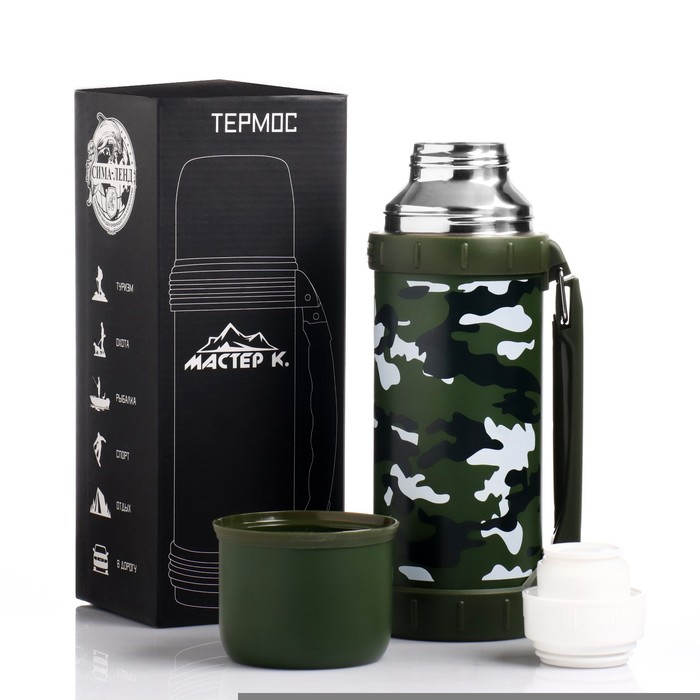 Термос, 1.2 л, Движение "Мастер К. Камуфляж", с кружкой, сохраняет тепло 18 ч, 11 х 29 см