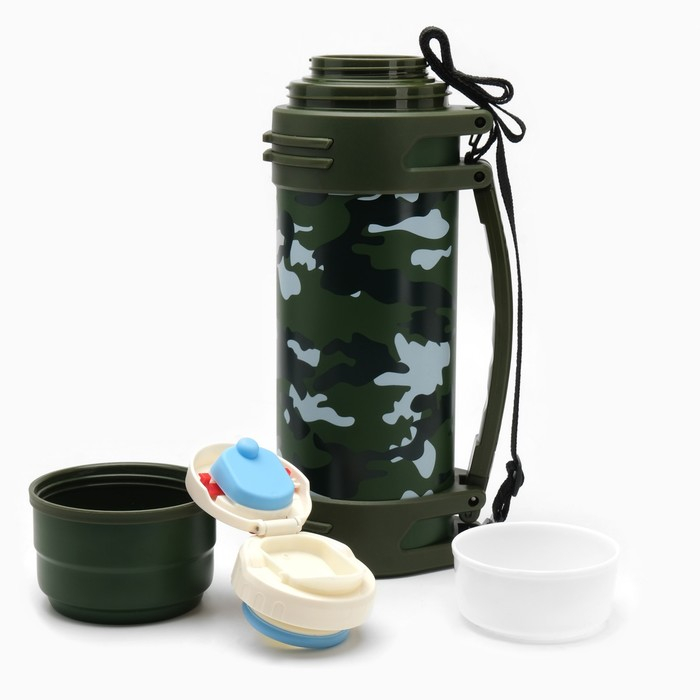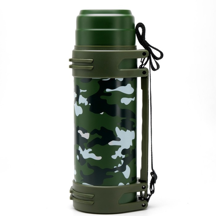Термос, 2 л, Тропа "Камуфляж", с двумя кружками, с ремешком, сохраняет тепло 24 ч, 13.5х36см