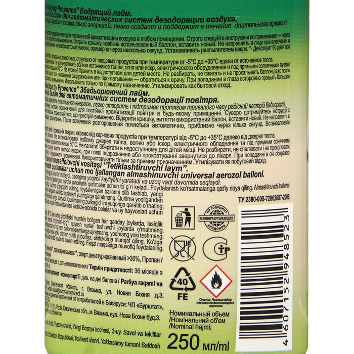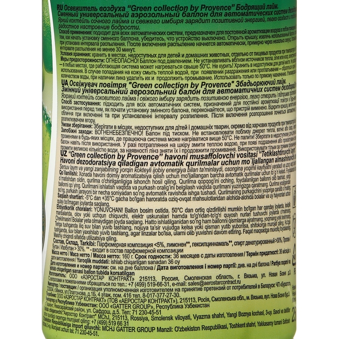 Освежитель воздуха «Green collection by Provence»: «Бодрящий лайм», универсальный сменный баллон