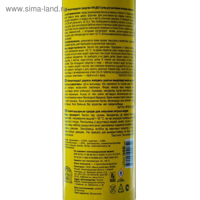 Инсектицидное средство "КРА - део супер Дихлофос" для уничтожения летающих насекомых.