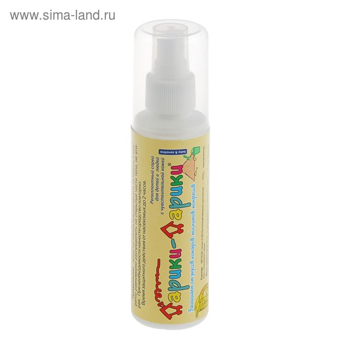 Средство репеллентное «Дарики-Дарики спрей» для защиты детей от 2 лет и людей с чувствительной кожей от нападения летающих кровососущих насекомых (комаров, мокрецов, москитов) при нанесении на открытые части тела.