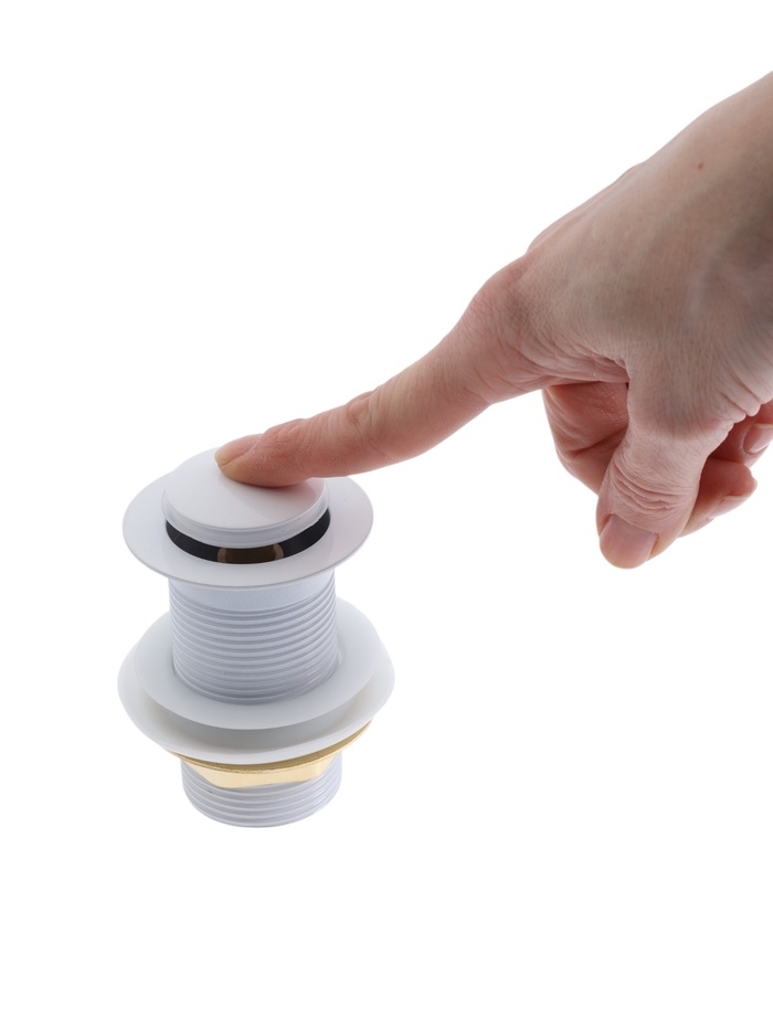 Донный клапан ZEIN engr, маленькая кнопка, без перелива, нержавеющая сталь, белый