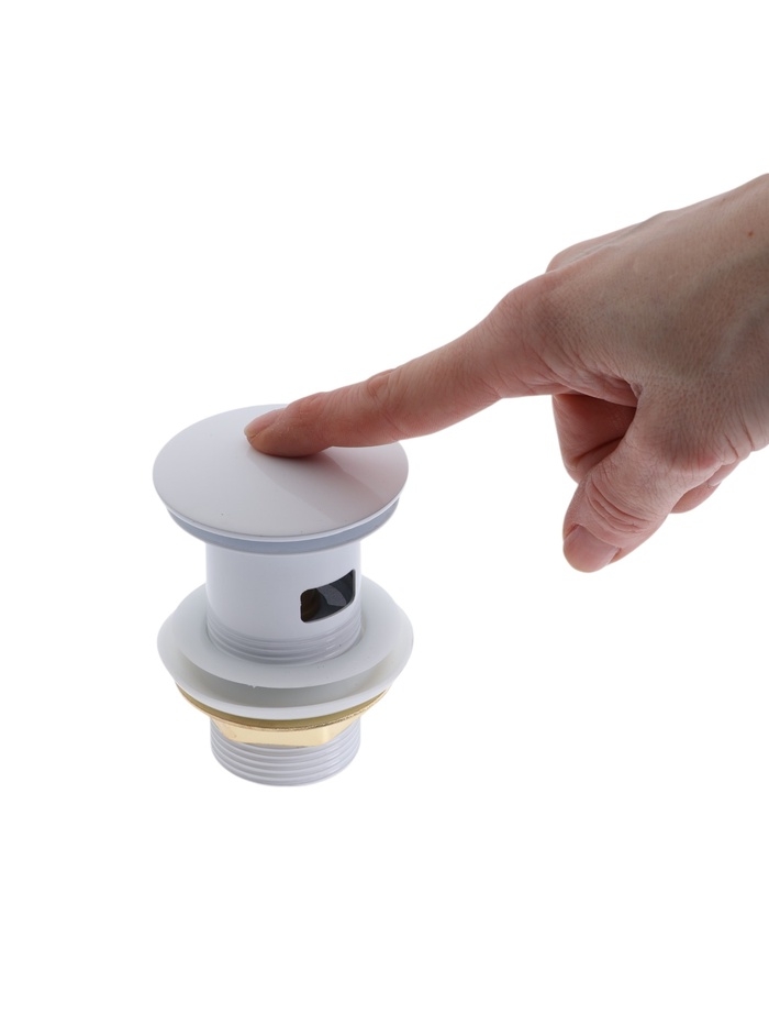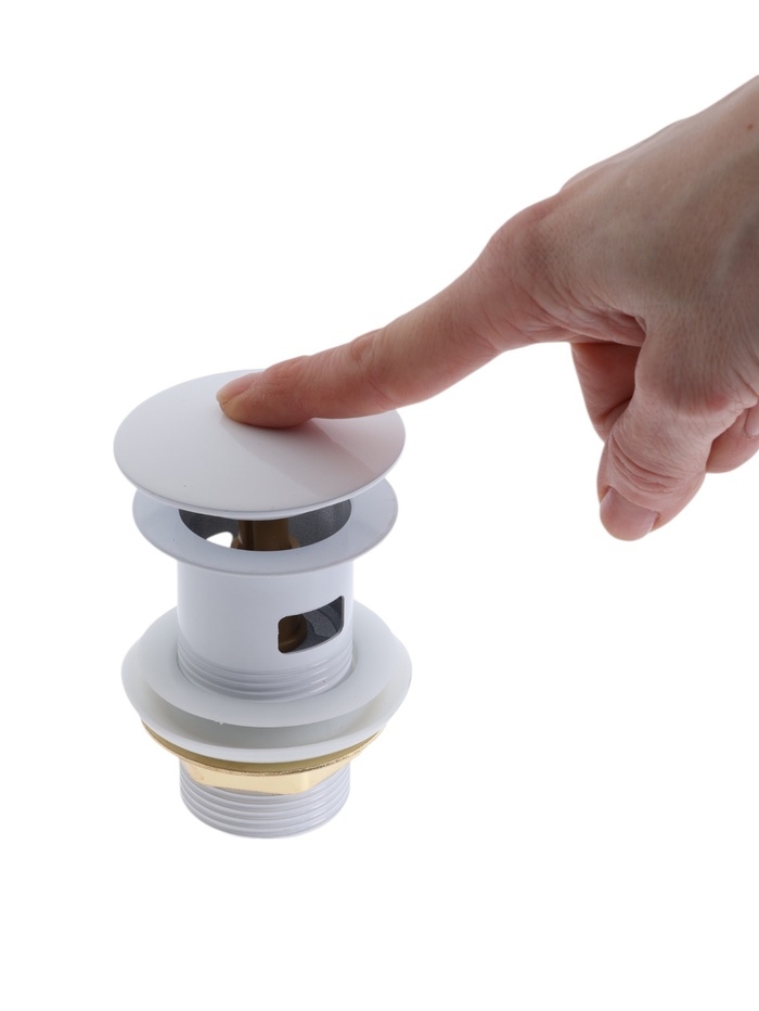 Донный клапан ZEIN engr, большая кнопка, без перелива, нержавеющая сталь, белый