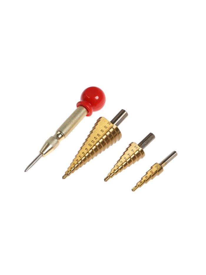 Набор сверл ступенчатых с кернером ТУНДРА, HSS, трехгранный хвостовик, 4-12, 4-20, 4-32 мм 1051919