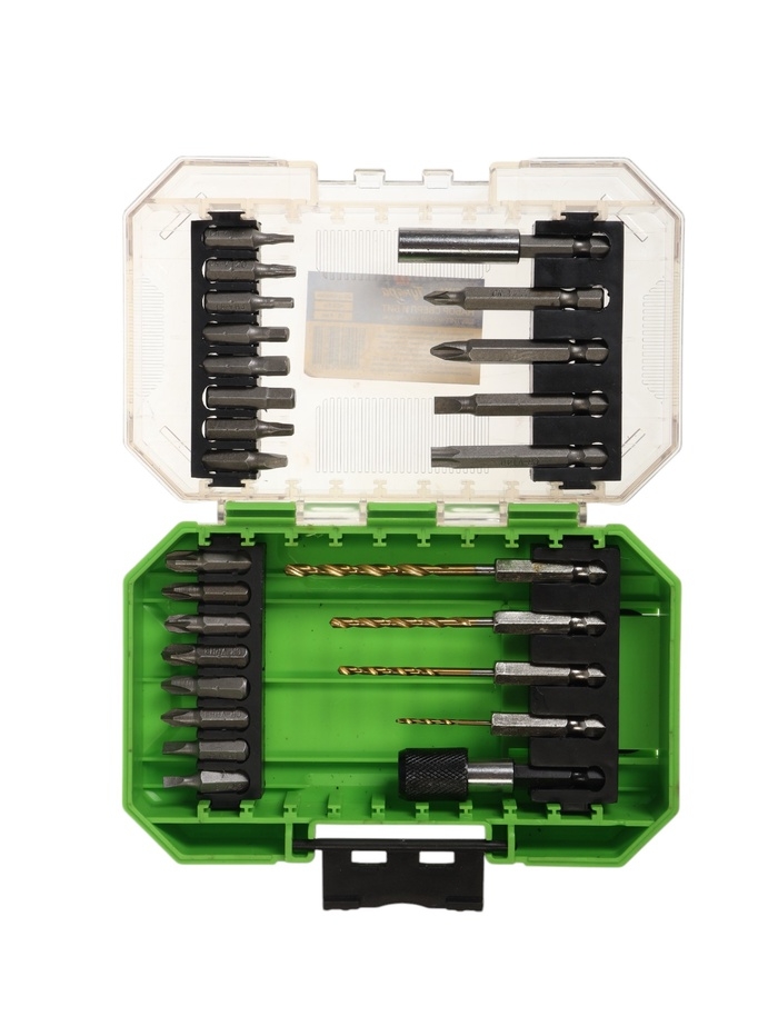 Набор сверл и бит ТУНДРА, HSS-Tin, шестигранный хвостовик, 1.5 - 4 мм, 26 предметов