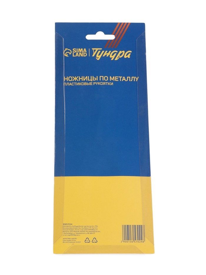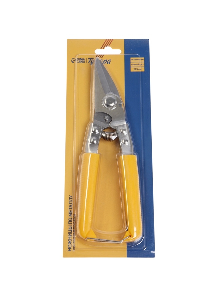 Ножницы по металлу ТУНДРА, авторазжим, пластиковые рукоятки, правый рез, 225 мм
