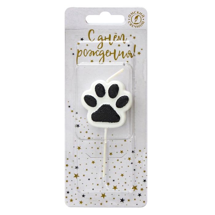 Свеча в торт на шпажке "Лапка - сквиш", бело-черная