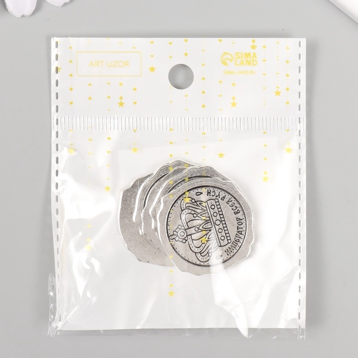 Декор металл для творчества "Оттиск печати, Император всея Руси" набор 5 шт 3х3 см