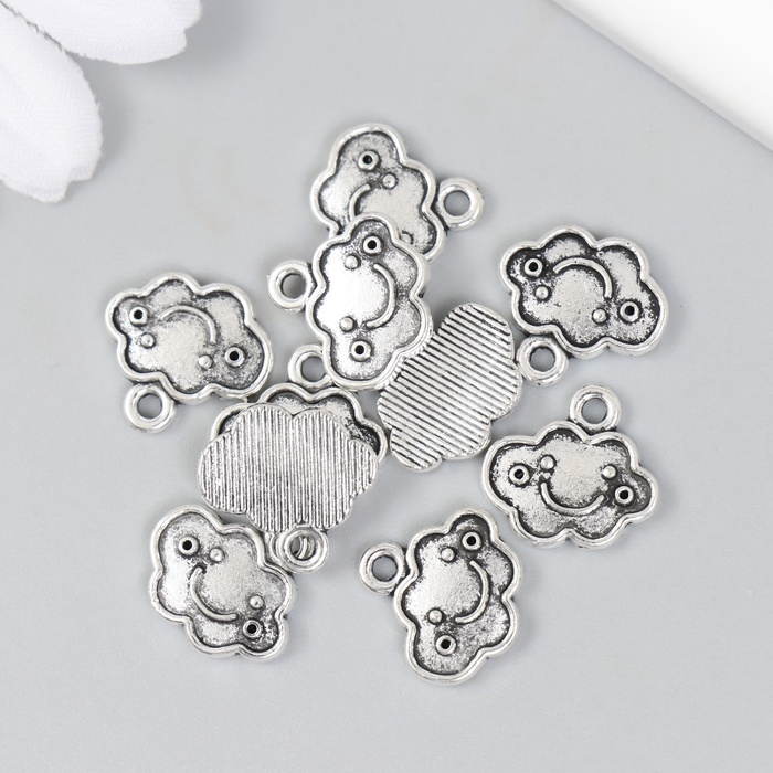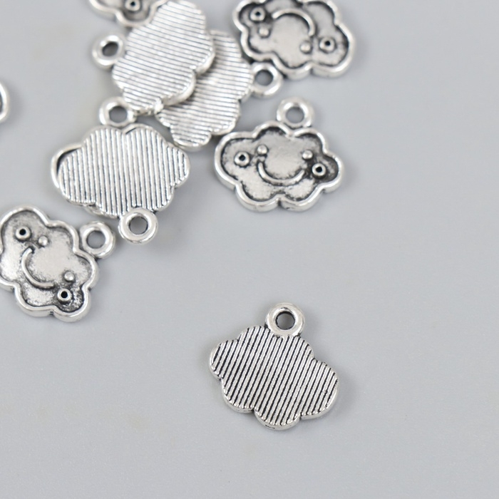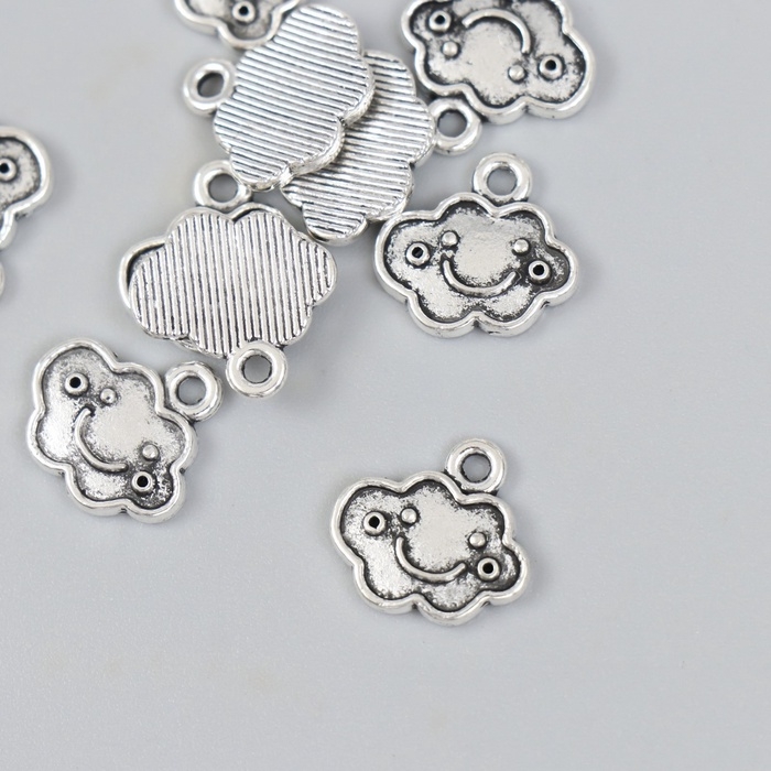 Металлический элемент, декоративная подвеска «Весёлое облако», серебро набор 10 шт 1,4х1,3 см 1088
