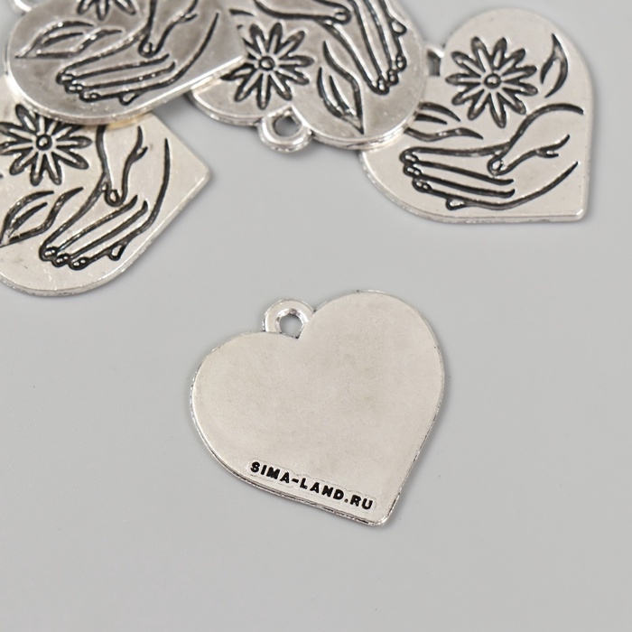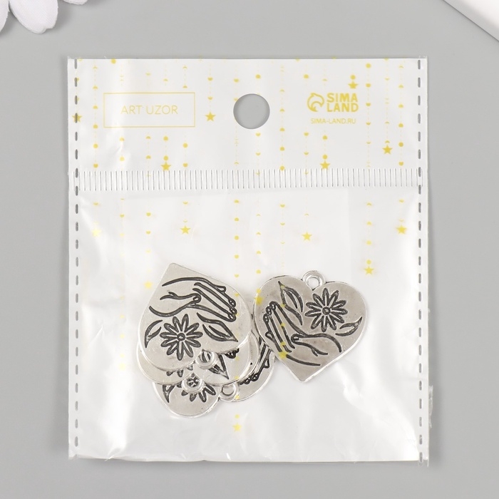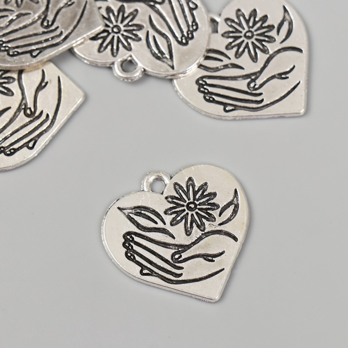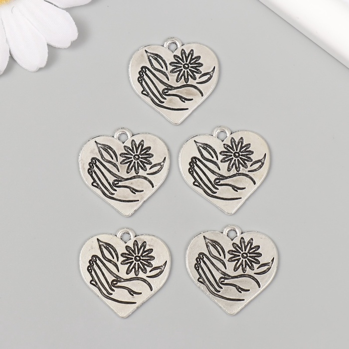 Металлический элемент, декоративная подвеска «Ромашка в руке: Сердце» набор 5 шт 2,3х2,5 см 108836
