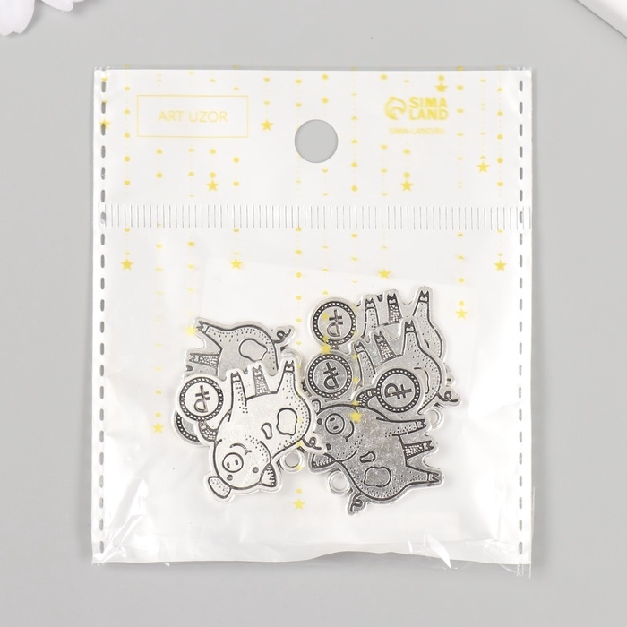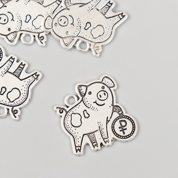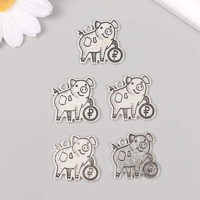 Металлический элемент, декоративная подвеска «Хрюшка с рублём» набор 5 шт 2,4х2,5 см