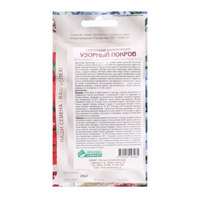 Семена Цветов Цветочная композиция Узорный Покров, 20 драже