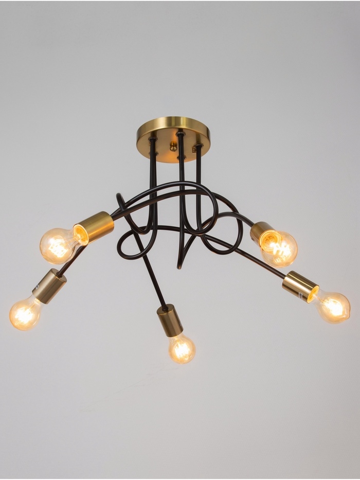 Люстра "Узел" 5х40Вт Е27 черный/латунь 52х52х36см