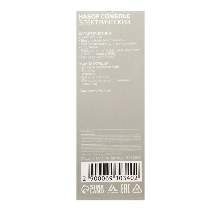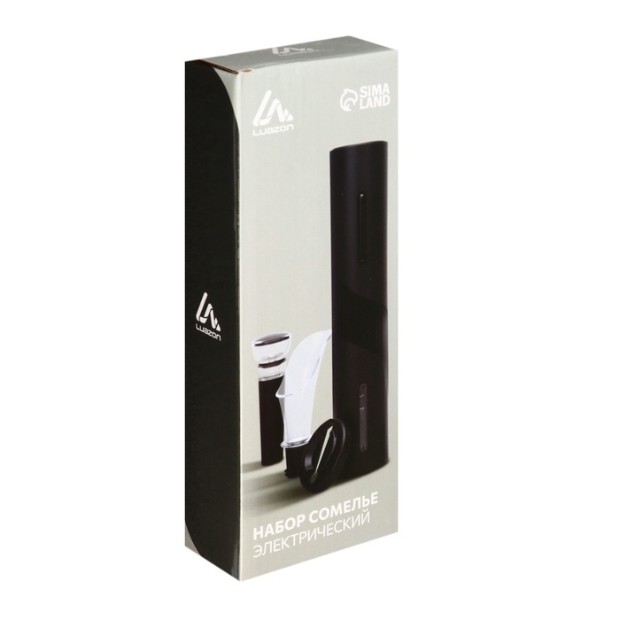 Набор сомелье электрический Luazon LSH-04, пробка, аэратор, штопор, от батареек 4хАА, пластик