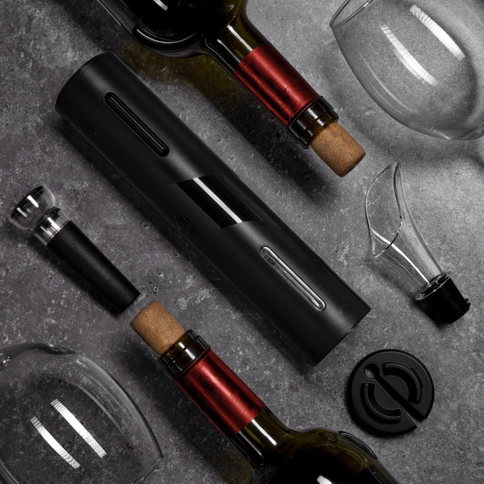 Откройте для себя мир вин! Электрический набор сомелье — это идеальный компаньон для ценителей вина. В комплекте вы найдете все необходимое для комфортного открывания и дегустации напитков.