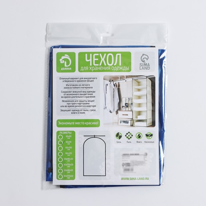 Чехол для одежды Доляна, 60×90 см, цвет синий, прозрачный