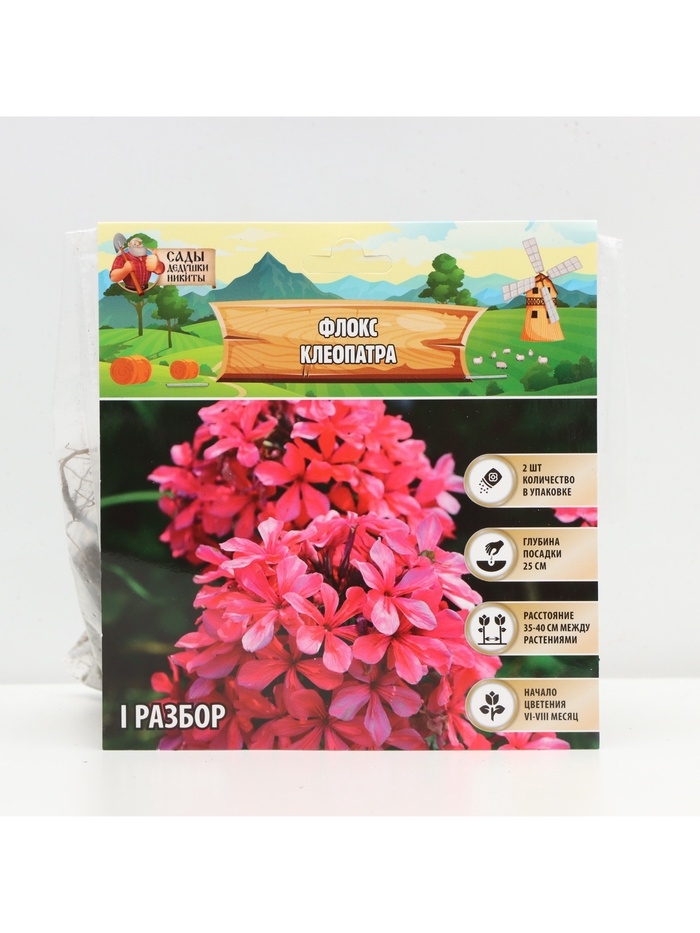 Флокс «Клеопатра» корневище в пакете с торфогрунтом, р-р I, 2 шт.