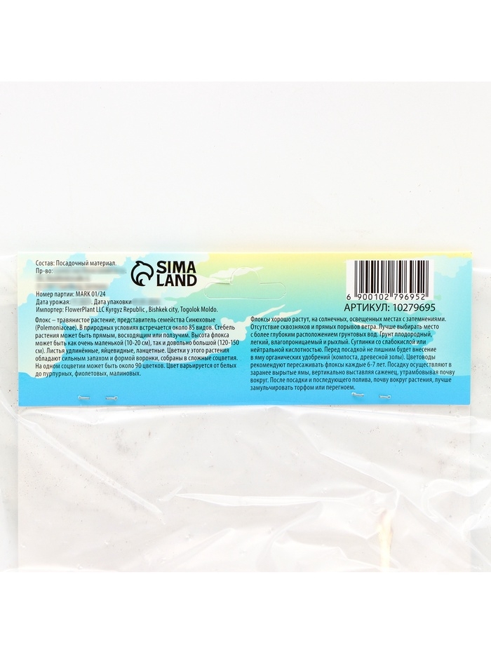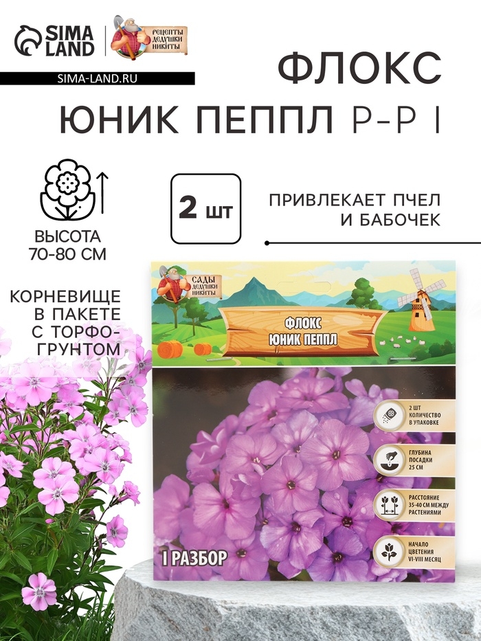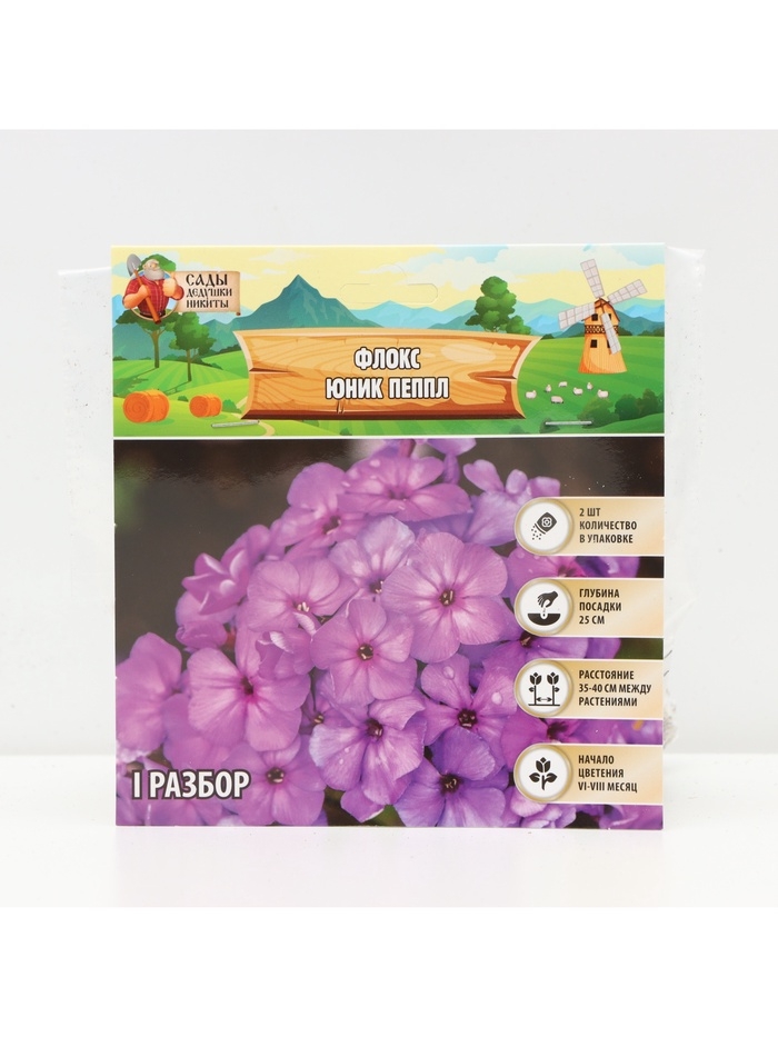 Флокс «Юник Пеппл» корневище в пакете с торфогрунтом, р-р I, 2 шт.