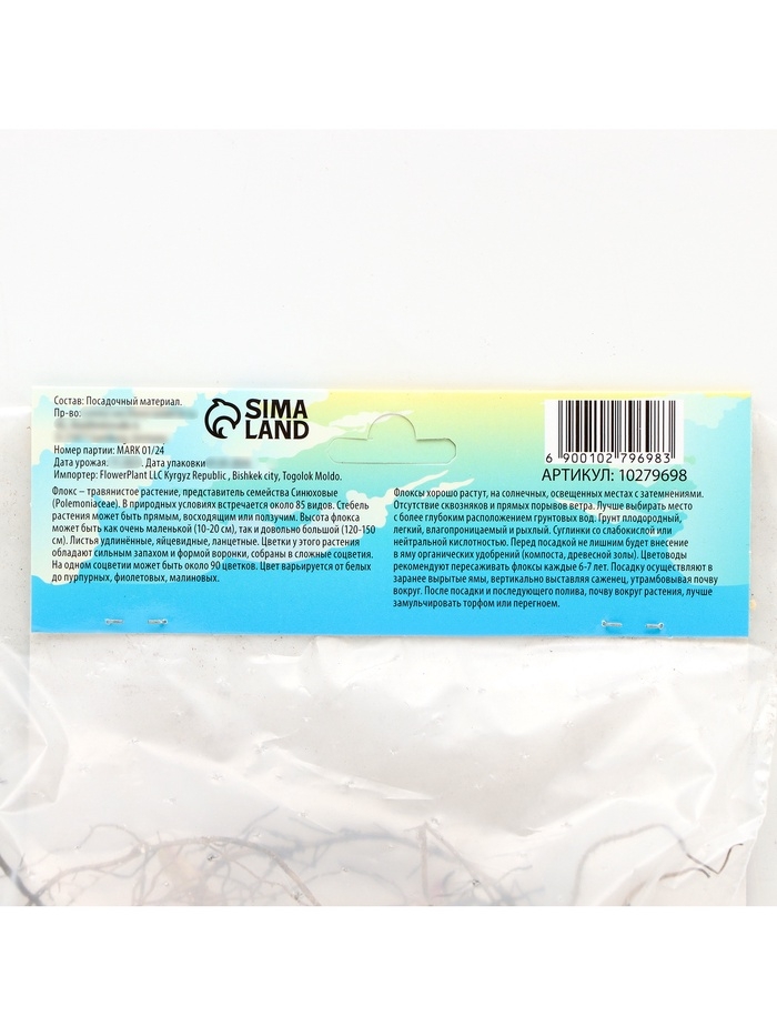 Флокс «Отэм Джой» корневище в пакете с торфогрунтом, р-р I, 2 шт.