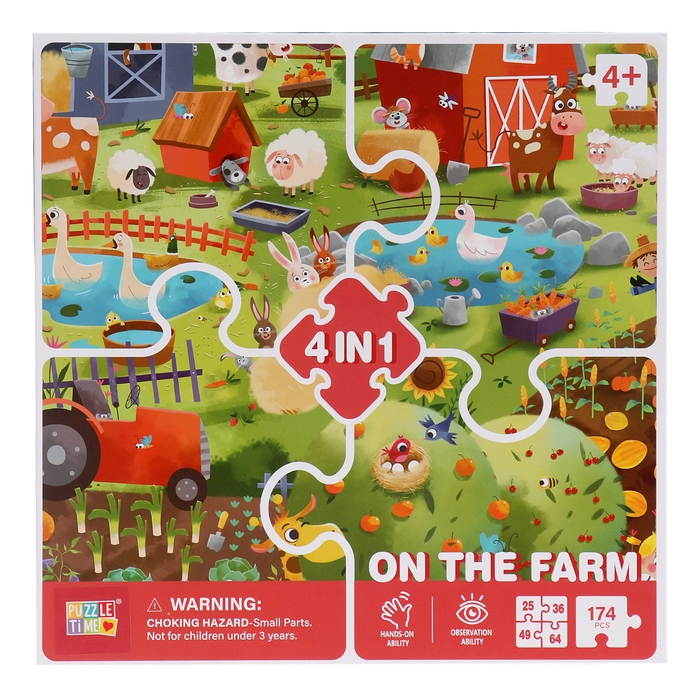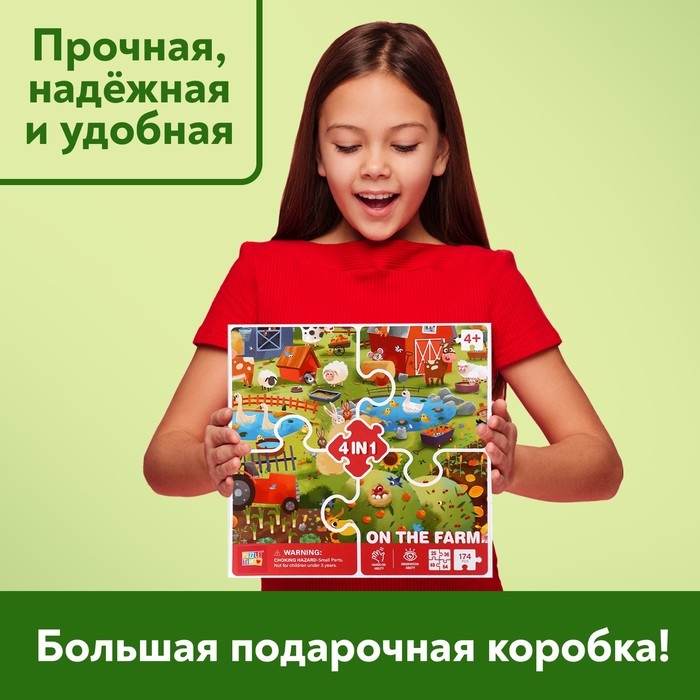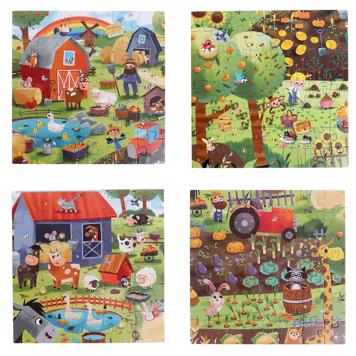 Пазлы 4 в 1 «День на ферме», 25, 36, 49, 64 элемента