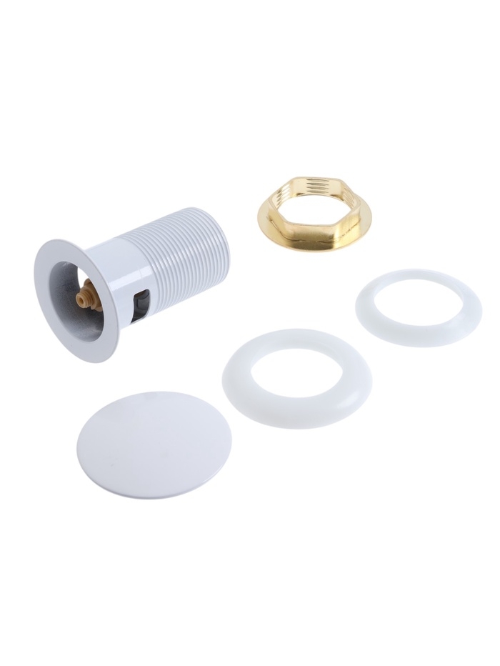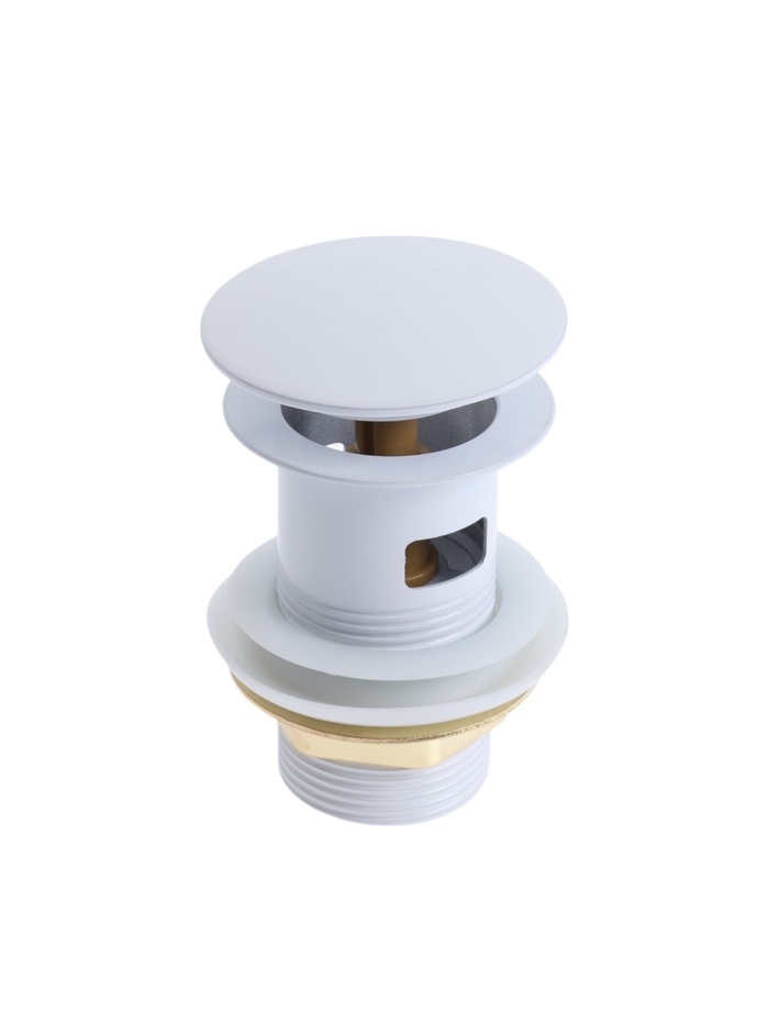 Донный клапан ZEIN engr, большая кнопка, с переливом, нержавеющая сталь, белый