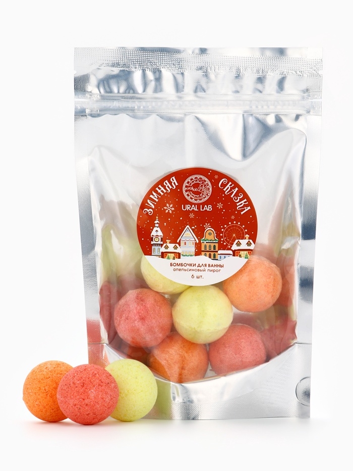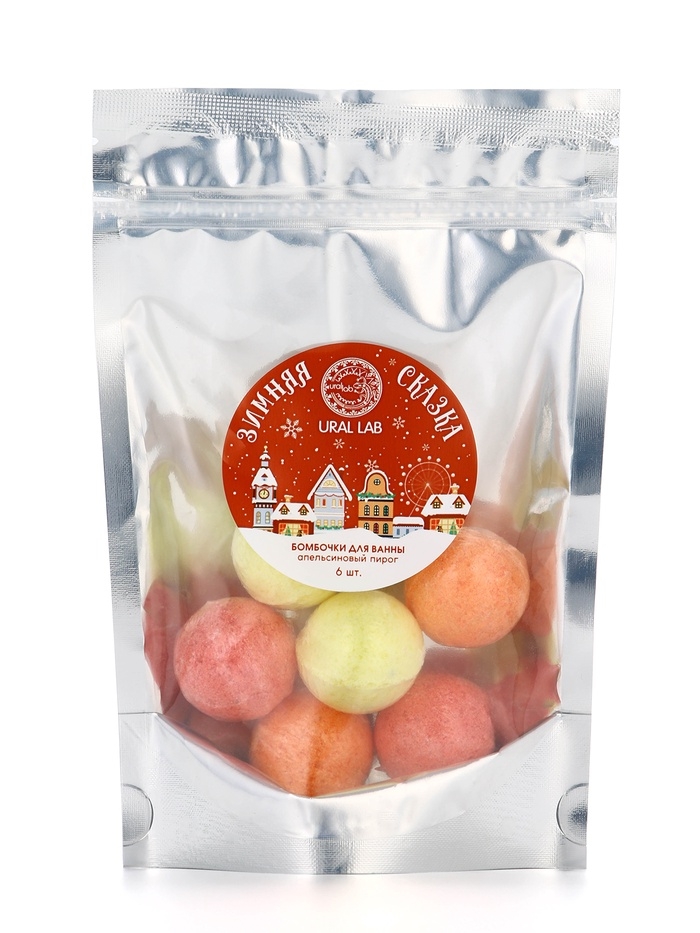 Набор бомбочек для ванны в пакете "Зимняя сказка", 6 шт по 20 гр, апельсиновый пирог