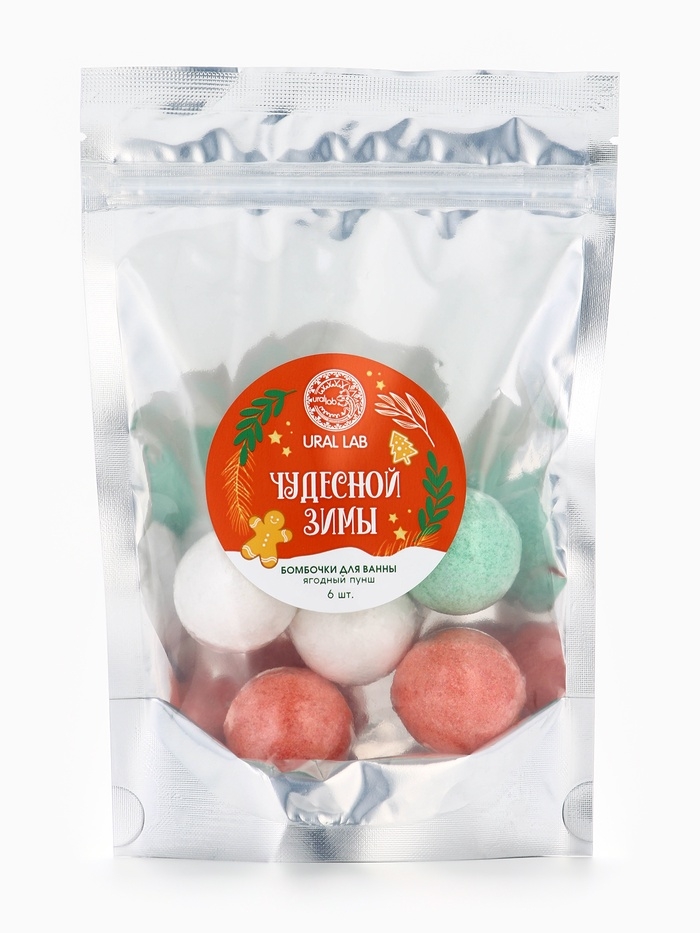 Набор бомбочек для ванны в пакете "Чудесной зимы", 6 шт по 20 гр, ягодный пунш