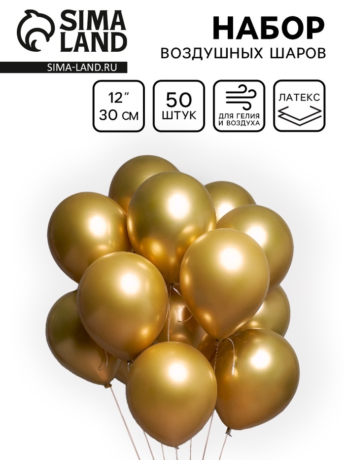 Воздушные шары латексные 12" «Хром», 50 шт., золотые