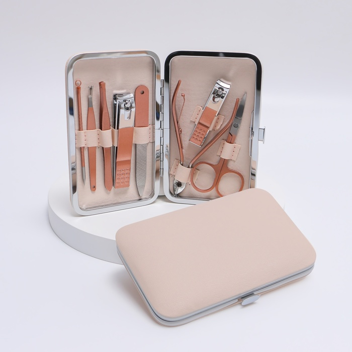 Набор маникюрный, 8 предметов, в футляре, цвет бежевый/розовое золото