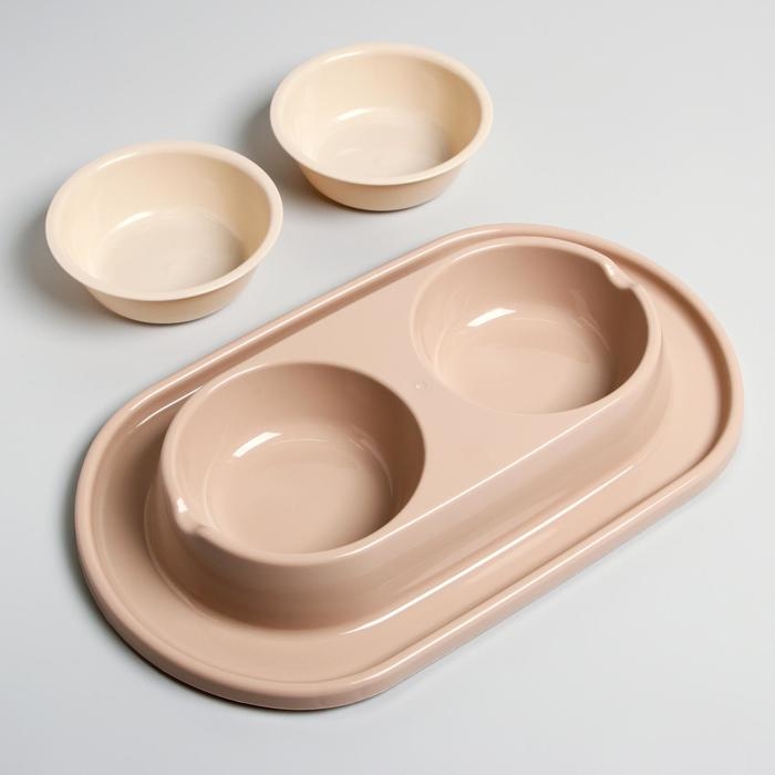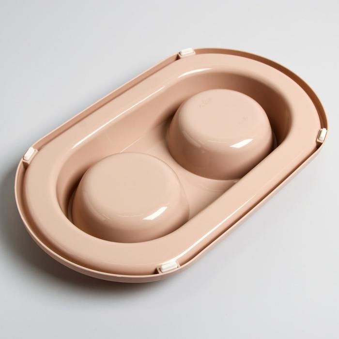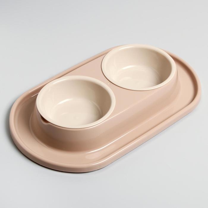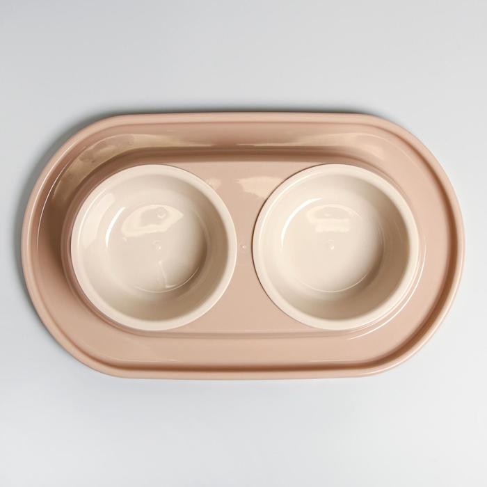Миска для животных "Мур-мяу" 0,3л двойная на подставке, бежевая