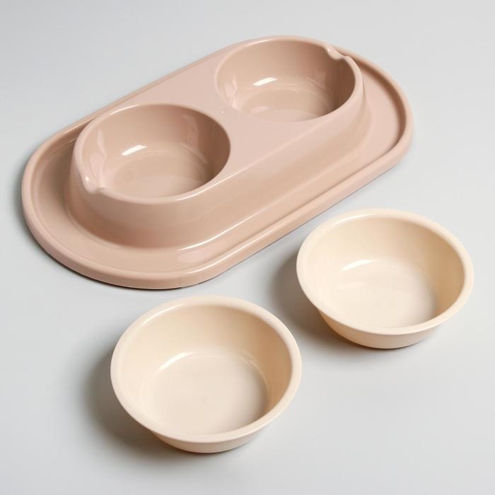 Миски с лотком "Феликс" 0,3 л, 41 x 30 x 6 см, серый лоток, белые миски