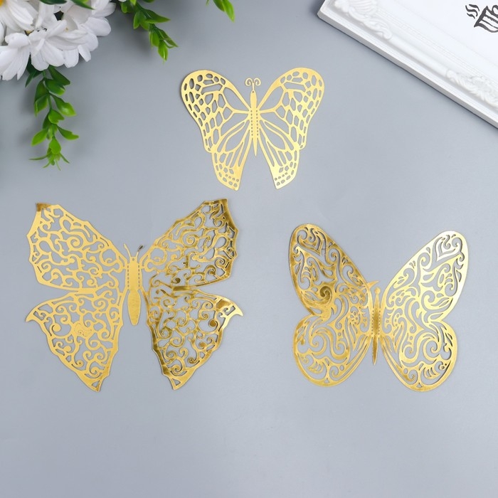 Наклейка пластик "Бабочки золото ажурная" набор 12 шт 12 см, 10 см 8 см
