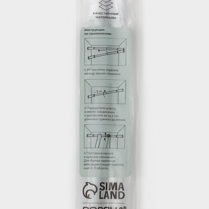 Карниз для ванной Доляна, телескопический, d=3,5 см, 110-200 см, усиленный, цвет белый