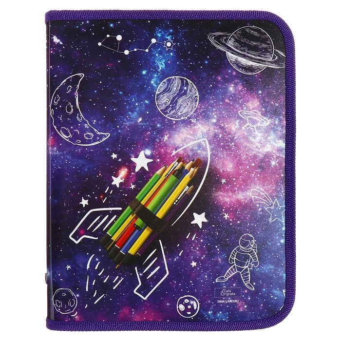 Папка для тетрадей А5, 180 х 230 х 25 мм, молния вокруг, пластиковая 0.5, ПМ-А5-04 Calligrata "Ракета"