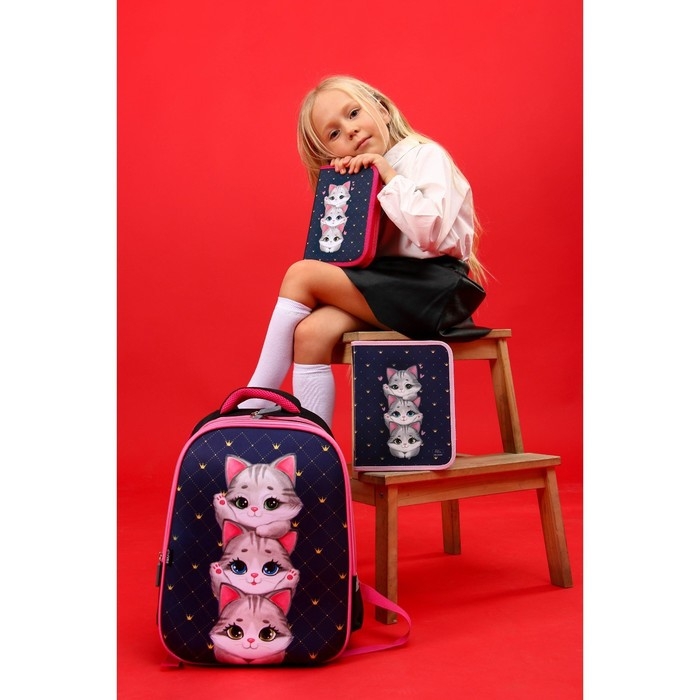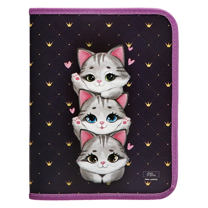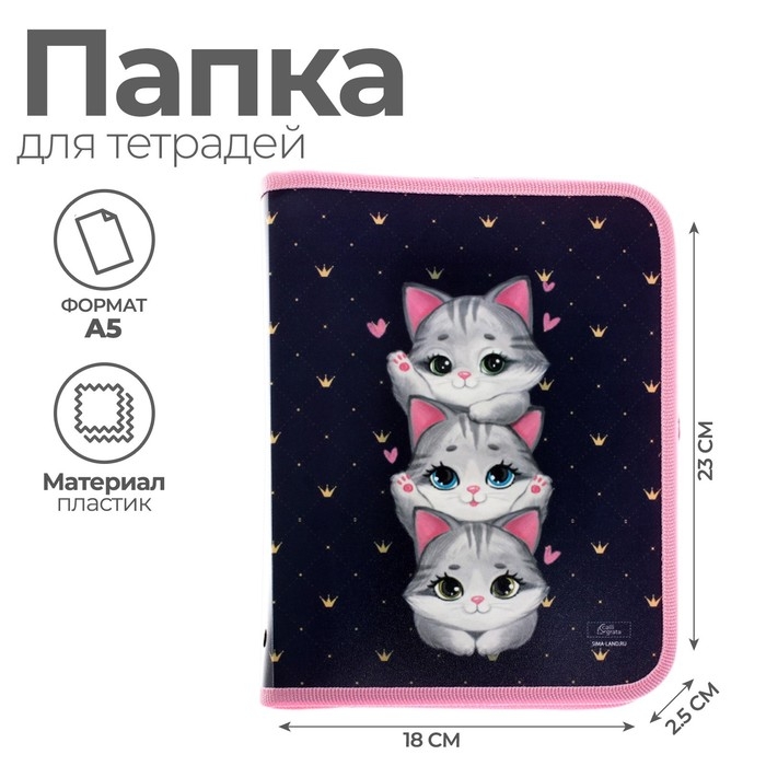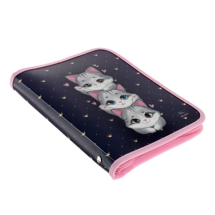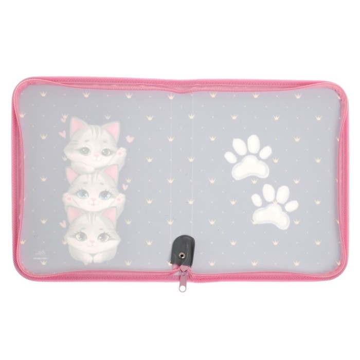 Папка для тетрадей А5, 180 х 230 х 25 мм, молния вокруг, пластиковая 0.5, ПМ-А5-04 Calligrata "Котики"