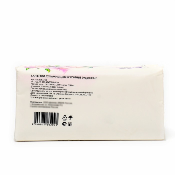 Салфетки бумажные в мягкой упаковке Элара Home, 250 шт.
