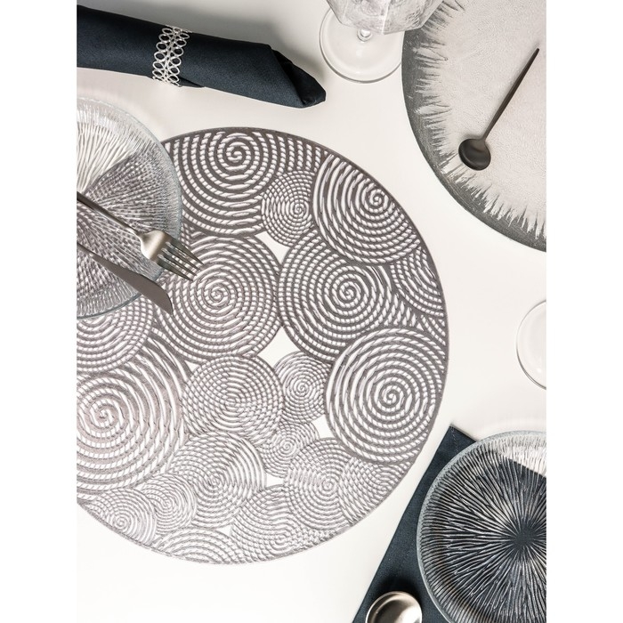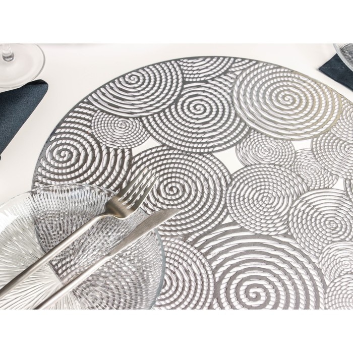 Салфетка сервировочная на стол «Гипноз», d=38 см, цвет серебро