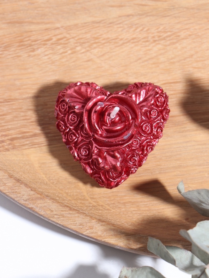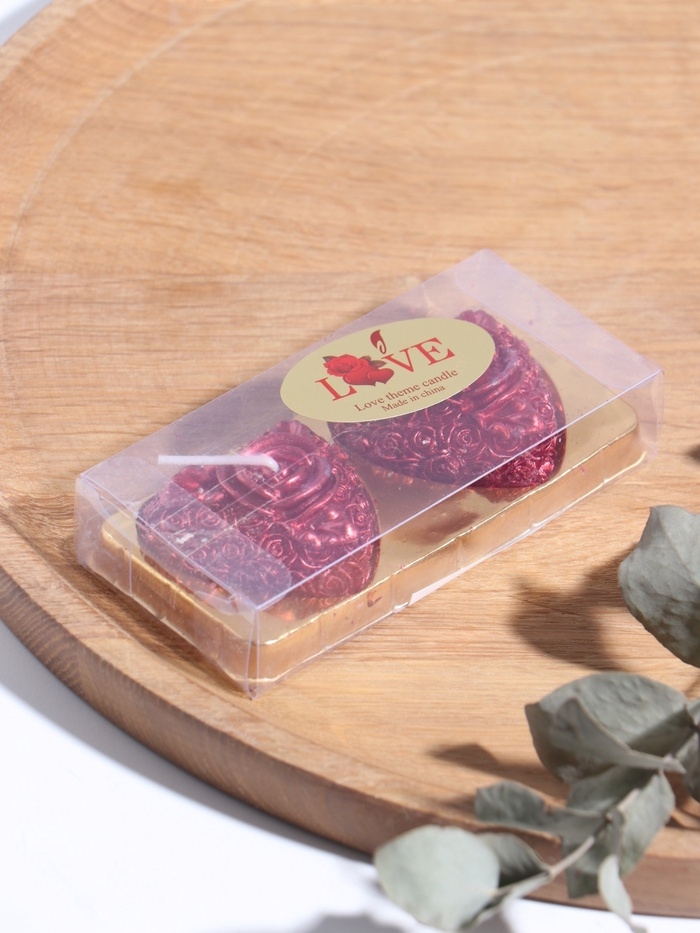 Набор свечей "Сердце с розой", 2 шт, 5х2,5см, красный