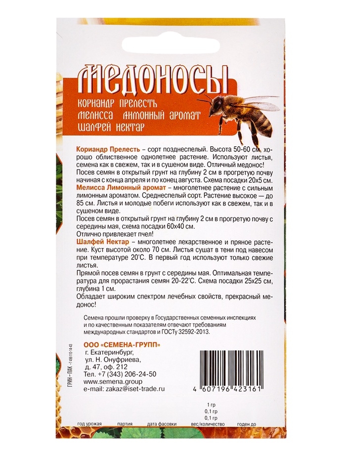 Семена Набор пряных трав-медоносов, привлекающих опылителей: Кориандр, Мелисса, Шалфей, 0,3 г 108847