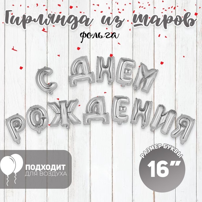 Гирлянда из шаров 16" «С днём рождения», серебряная