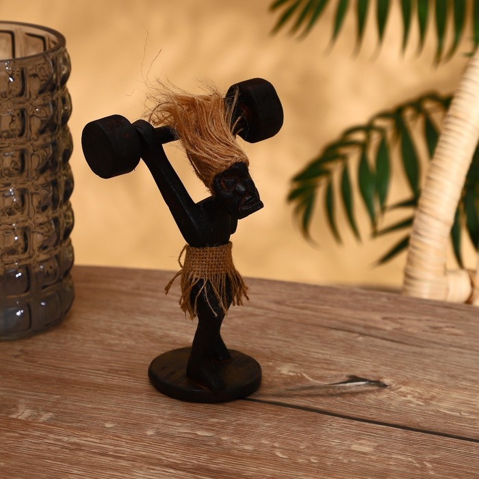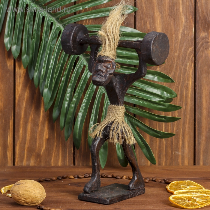 Сувенир «Абориген-штангист», 14×9×20 см, дерево