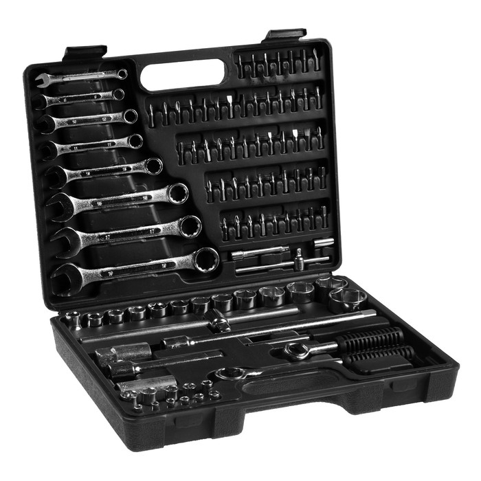 Набор инструментов в кейсе ТУНДРА, автомобильный, 1/2" и 1/4", 98 предметов